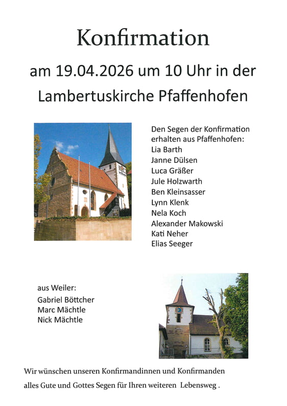 in unserer Kirchengemeinde Pfaffenhofen-Weiler